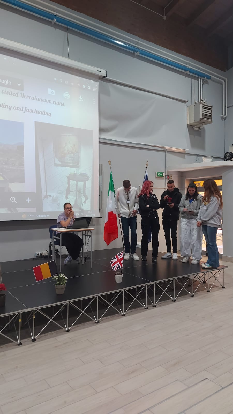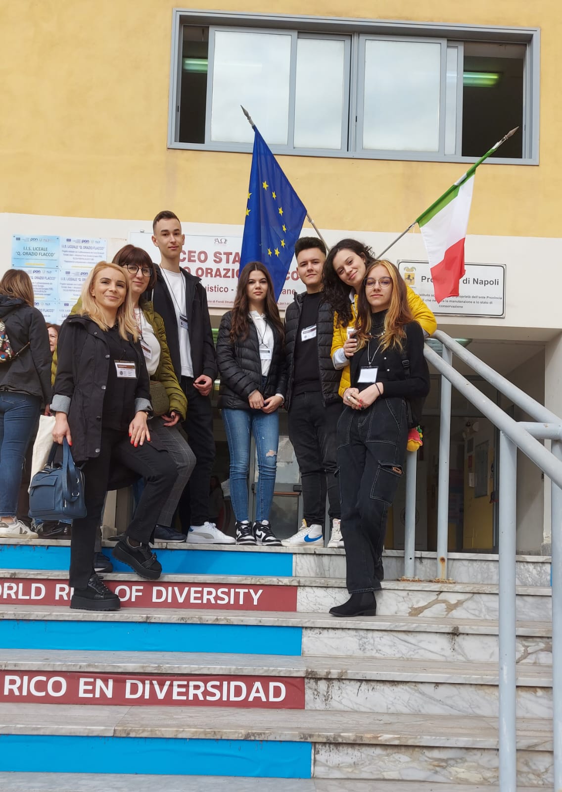 Întâlnirea, la care au fost prezenți elevi și profesori din cele 6 țări partenere (Italia, Portugalia, Franța, Regatul Unit, România, Italia, Germania) a debutat cu un tur al liceului Quinto Orazio Flacco, timp în care gazdele noastre ne-au prezentat și o parte din istoria și geografia orașului Portici.