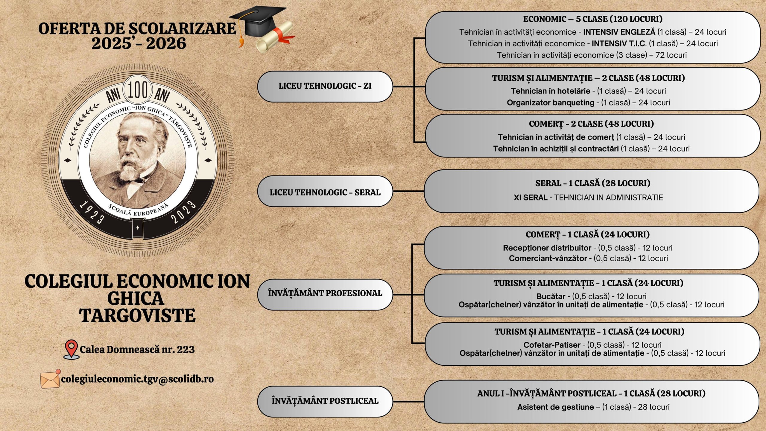 Școală europeană/ 100 de ani de învățământ economicColegiul Economic „Ion Ghica„ Târgoviște OFERTA DE ȘCOLARIZARE